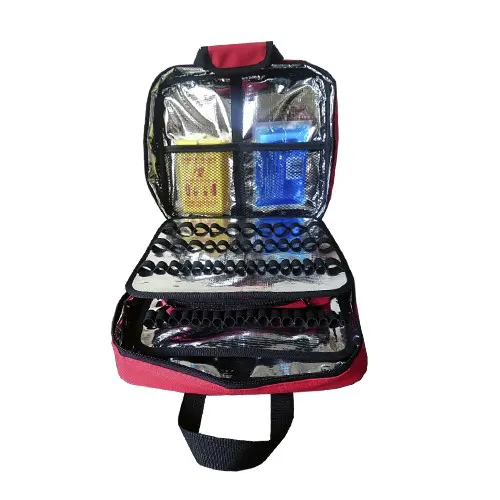 Incluye bolsa de gel frío /calor y recipiente para deshechos cortopunzantes.