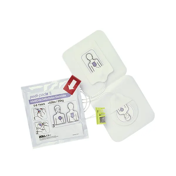 • Baterías y electrodos tamaño ADULTOS CPR-D-padz® + PEDIATRICOS Pedi-padz® II con una duración de cinco años, que conllevan menos recambios y un bajo coste total de mantenimiento.