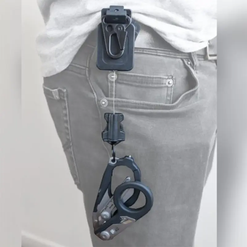 • Sistema de liberación rápida: Equipado con un sistema de clip innovador, este porta tijeras permite un desenganche rápido y sin complicaciones de las tijeras, asegurando una respuesta inmediata ante cualquier emergencia.